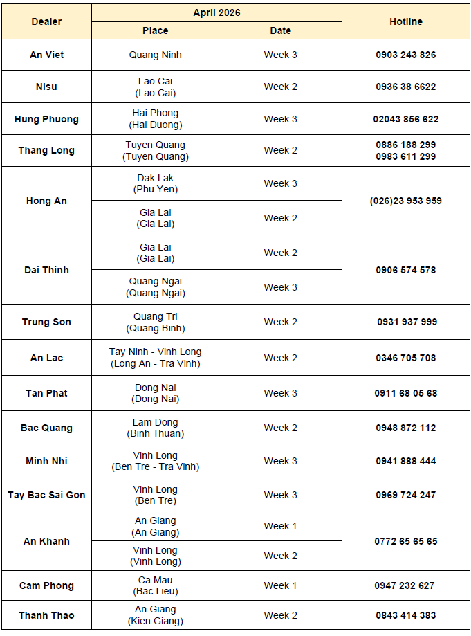 Dealer List: https://isuzu-vietnam.com/dai-ly-xe/
