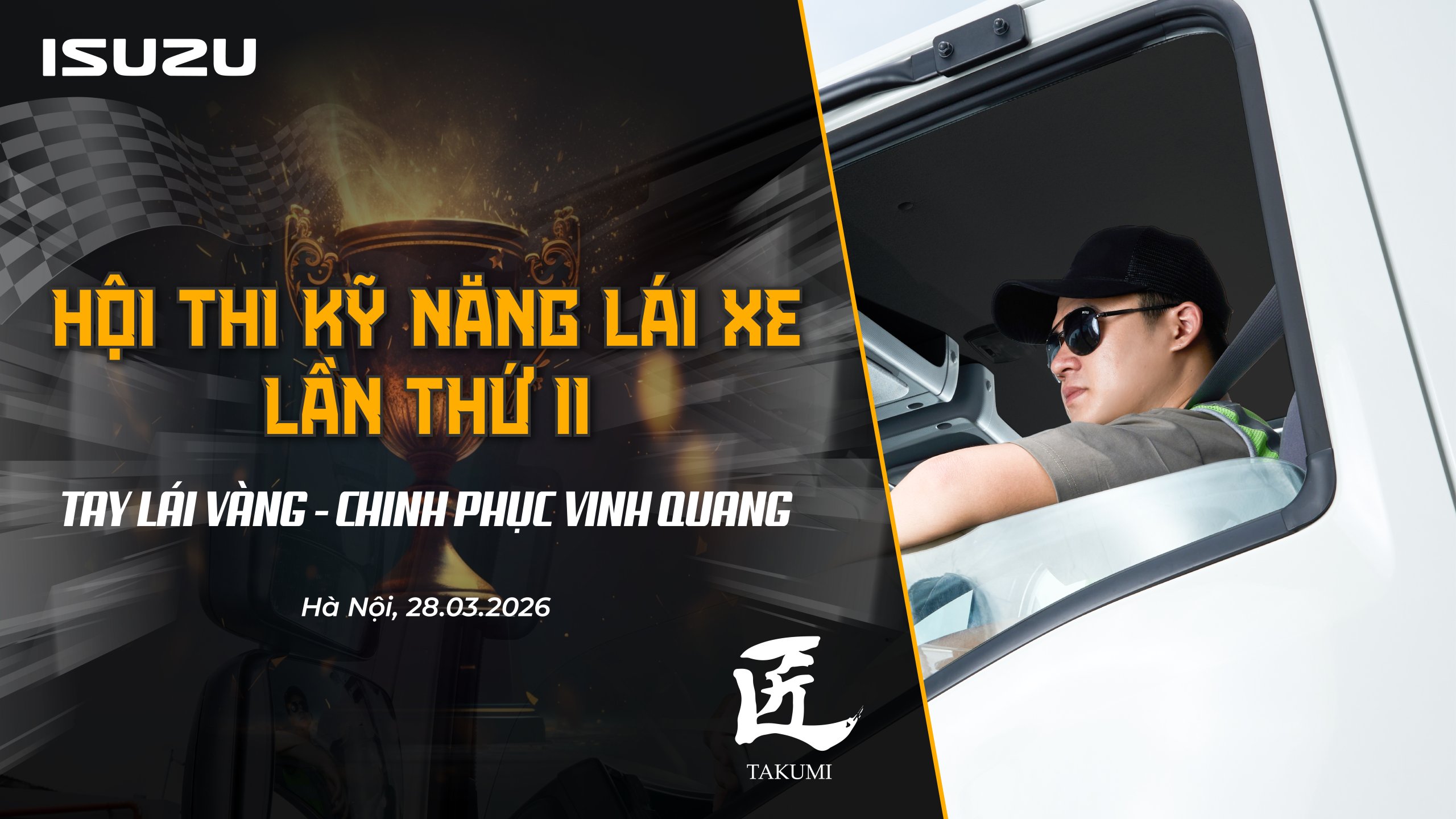 Hà Nội, 23 tháng 3 năm 2026 – Tiếp nối nỗ lực thúc đẩy văn hóa lái xe an toàn và nâng cao tiêu chuẩn nghề nghiệp trong ngành vận tải, Công ty TNHH Ô tô ISUZU Việt Nam (ISUZU Việt Nam) tổ chức Hội thi Kỹ năng Lái xe lần thứ 2 vào ngày 28/3/2026 với chủ đề “Takumi – Master of Driver”, quy tụ 30 đội thi gồm 60 tài xế chuyên nghiệp đến từ các đơn vị vận tải lớn trên cả nước. Chương trình nhằm tôn vinh đội ngũ tài xế chuyên nghiệp, đồng thời lan tỏa văn hóa lái xe an toàn và tiết kiệm nhiên liệu.